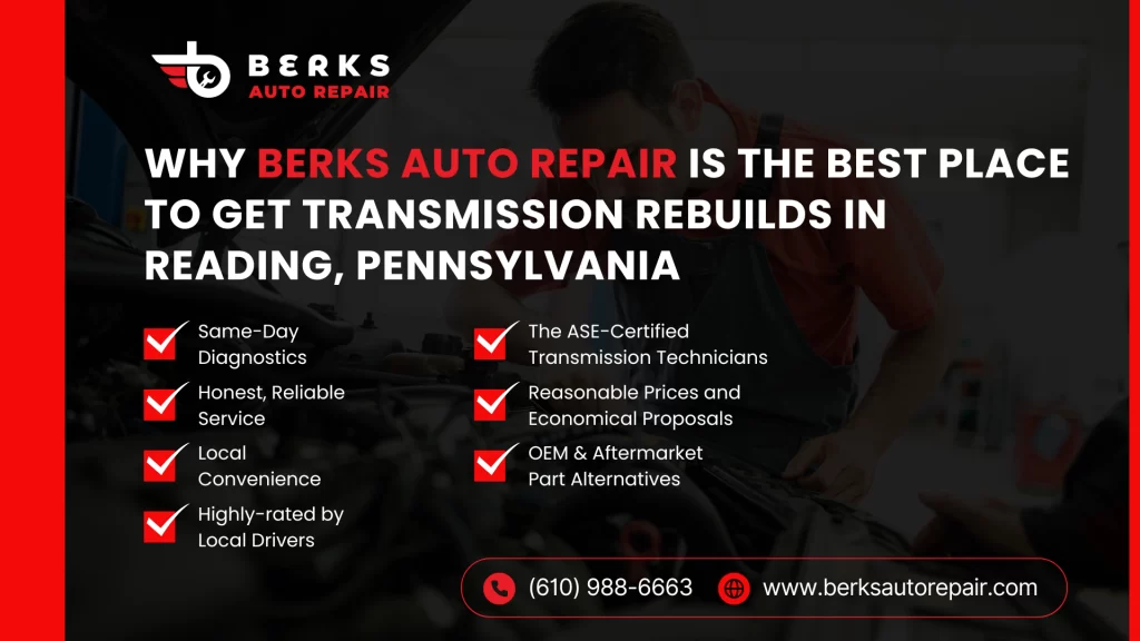 Finding the nearest, best-rated, or closest store to have a transmission rebuild Reading PA? Berks Auto Repair is unique–the reason is the following: