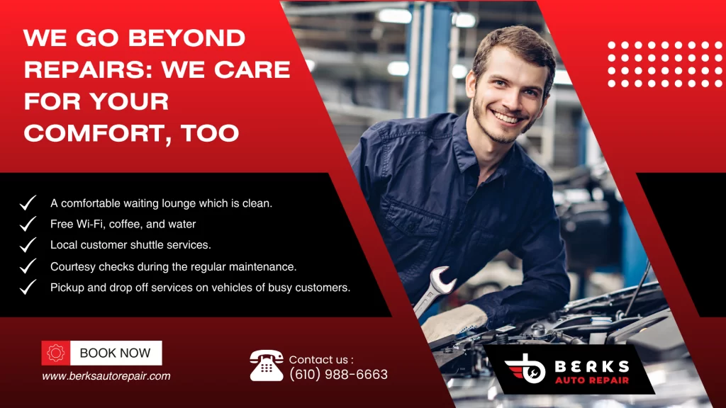 The Berks Auto Repair does not stop there. Our concern is to ensure that your visit will be comfortable, stress-free and convenient. That’s why we offer: