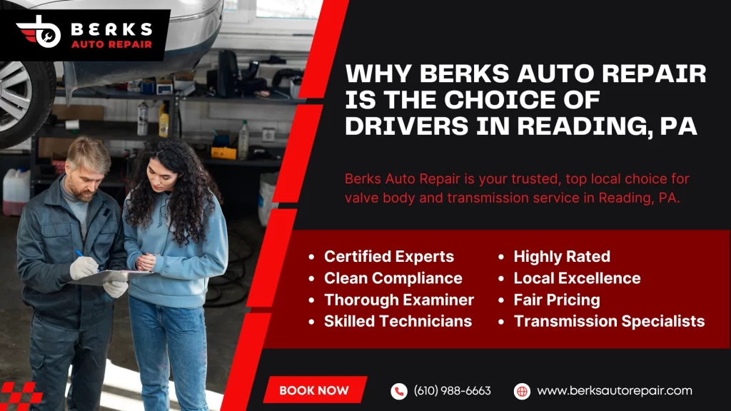 Berks Auto Repair is the best choice when you are searching on google, and you are trying to know the valve body service in the area or the nearest, most trusted transmission repair shop in Penn Street, Reading, Pennsylvania. We Are: