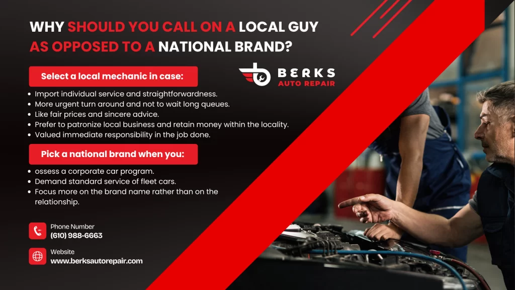 Therefore, this blog addresses the question of why thousands of motorists in Reading, PA, still prefer local firms such as Berks Auto Repair to national brands. Whether it is attributed to personal service and reasonable rates or to speedy service and community involvement, here is the complete narrative of why, in many instances, local means better.